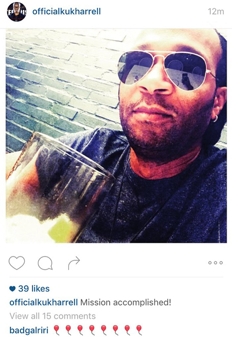 Kuk Harrell posted a picture of himself having a celebratory drink after being in the studio with Rihanna, and the caption read: "Mission accomplished!"