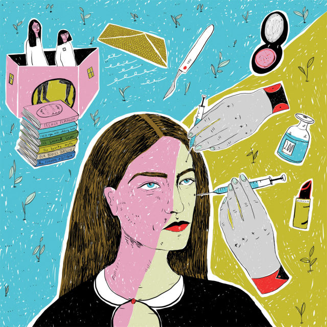 Another frightening scenario is that one or both of my daughters will do as I did in my youth: go to college, take Feminist Texts and Theory, and stop shaving their legs and armpits. As hard-core feminists, they'll write me off. I'll cry, Why aren't you coming home for Thanksgiving?And they'll be like, You're nothing but a foot soldier for the beauty industrial complex. Letting my face age naturally will be my ace in the hole. My counterclaim. Proof that I didn't pander to the male gaze.